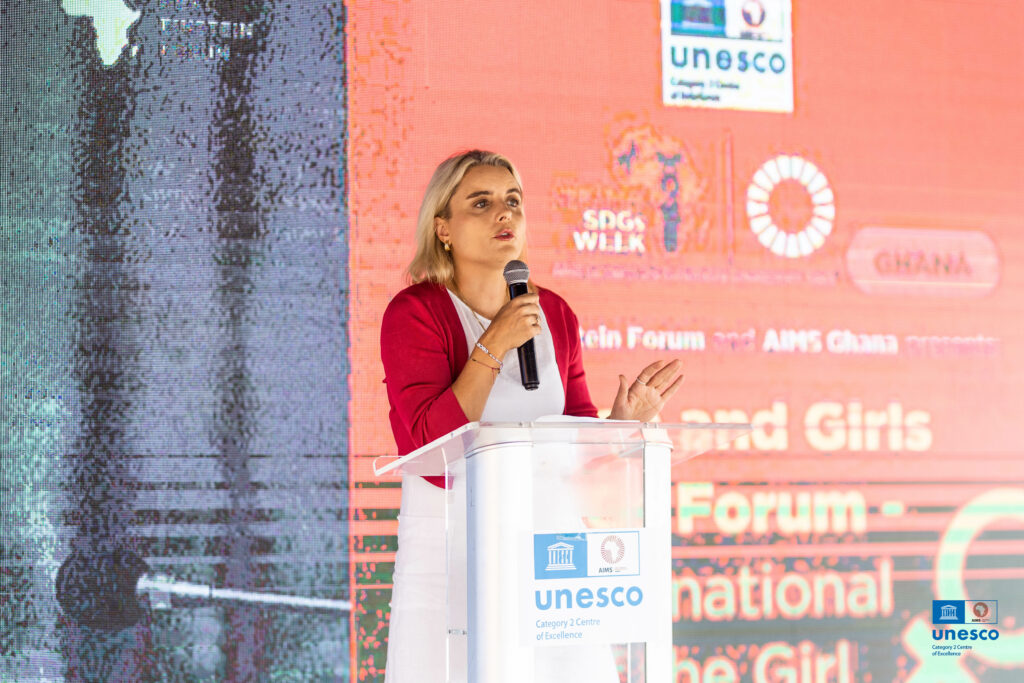 In partnership with the Next Einstein Forum (NEF) and GirledUp Ghana, with support from the Hewlett Foundation, AIMS Ghana hosted the Women and Girls in SDGs Forum, to commemorate the International Day of the Girl Child on October 11, 2024. The event, held at the Centre’s campus, embraced the United Nations’ theme for the year, “Girls’ Vision for the Future”, and focused on empowering young women in alignment with key Sustainable Development Goals (SDGs)—specifically, SDG 5 (Gender Equality), SDG 10 (Reduced Inequalities), and SDG 17 (Partnerships for the Goals).