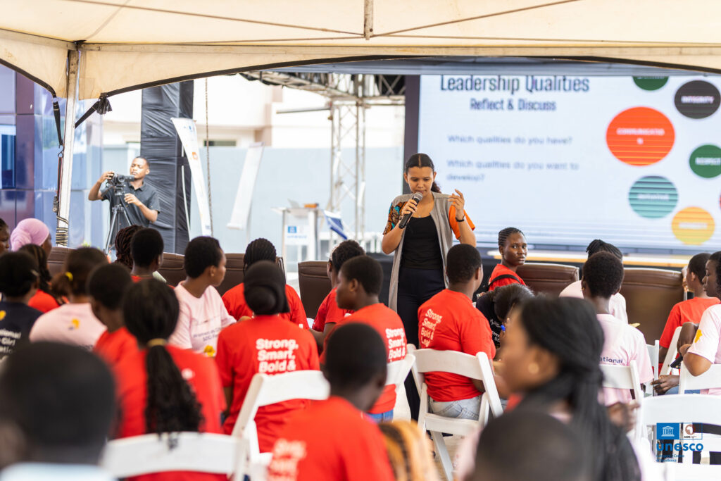 The celebration brought together 55 young girls from various groups, including GirledUp Ghana founded by Dr. Justina Onumah, Developers in Vogue, and fellows from the AIMS Girls in Mathematical Sciences Program (GMSP). The participants engaged in sessions led by experienced mentors and female leaders, focusing on leadership development, decision-making, and networking as well as interactive SDG action stations.