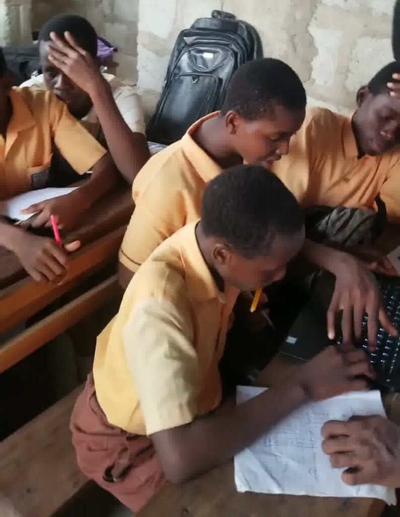 Additionally, last academic year, the Class of 2021 visited the Santoe KKMA Basic School at their permanent site to engage them in Mathematics and General Science. Grouped into different classes, the AIMS pattern of imparting knowledge was introduced, with some of the AIMS Ghana students assigned as tutors to monitor the progress of the pupils, ensuring that each of them understood what was being studied. There were positive responses with smiles on the faces of the pupils showing that they were getting conversant with the lessons being taught.