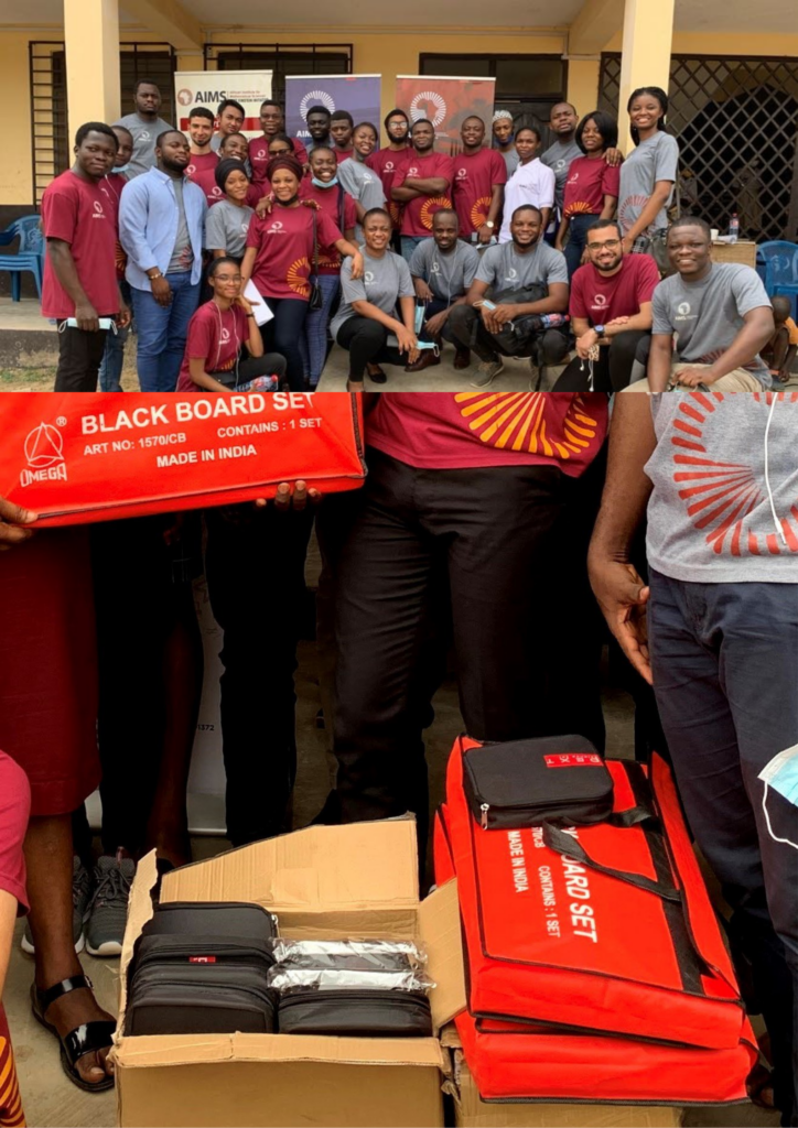 A meeting was also held with the female pupils, as one of the interests of AIMS is to raise women in science as researchers and innovative thinkers, who will usher in change within their countries. In a session with the girls, AIMS students aimed to reassure the younger female group that nothing should stop them from pursuing a career in the Sciences especially in Mathematics. A donation was later made consisting of exercise books and pens, science sets for general-science practicals as well as board mathematical sets to be used by the teachers for construction in Mathematics.
