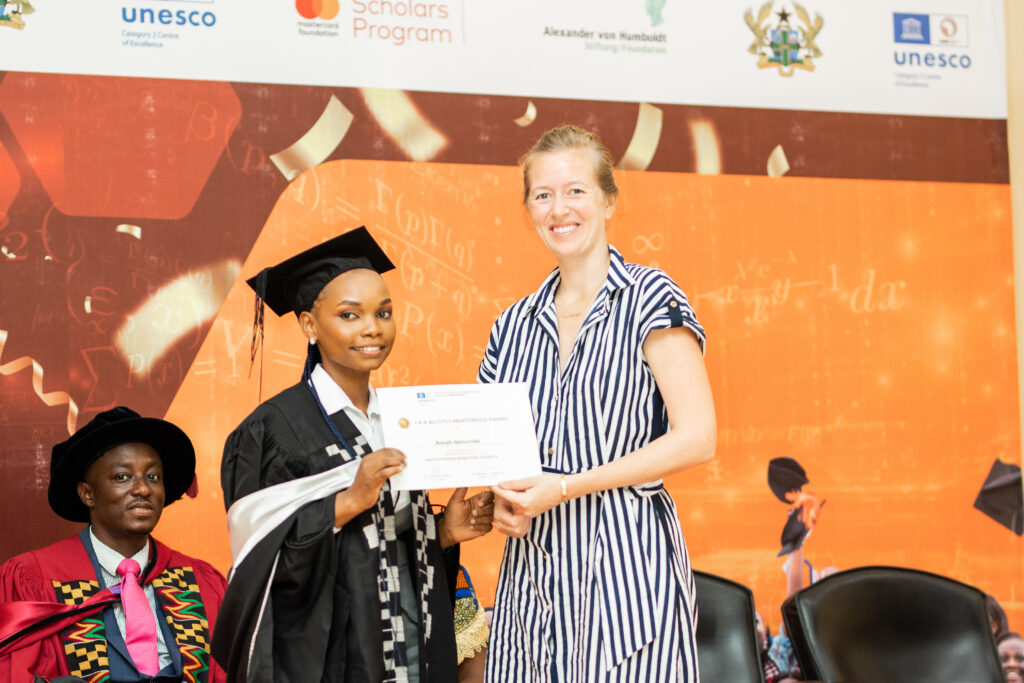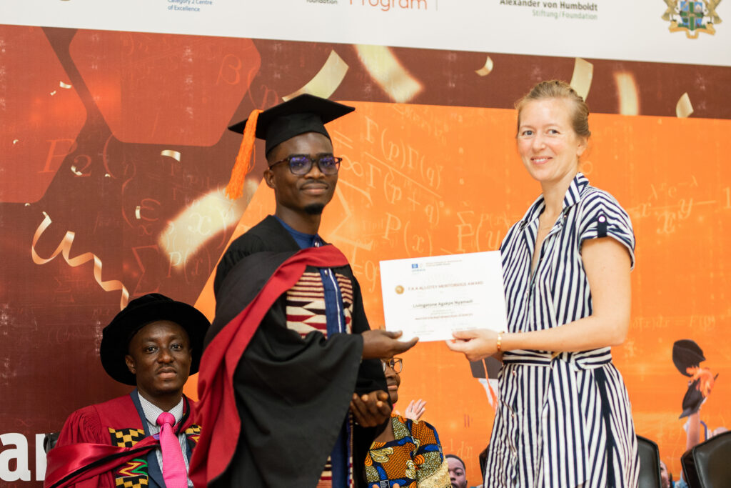 Six graduates were awarded for academic distinction, with Livingstone Agakpe Nyamadi winning the Valedictorian award and Annah Naturinda receiving the “Emmy Noether” Best Graduating Female Student award.
