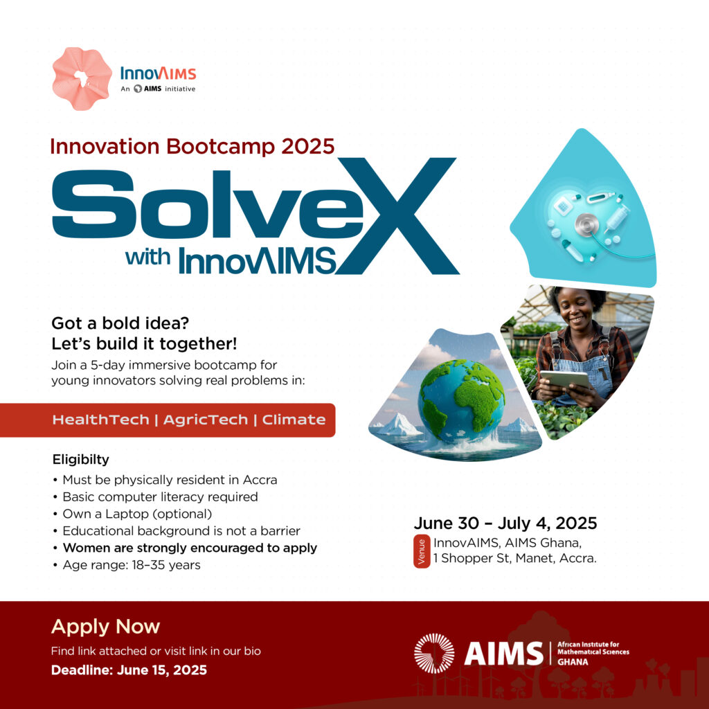 These are month-long hackathons designed to push the boundaries of innovation, with weekly challenges centered around transformative themes such as “Tech for Good” and “The Future of Farming.” Outstanding solutions earn exciting rewards—including tech gadgets, cash prizes, and exclusive features across AIMS Ghana’s media platforms.