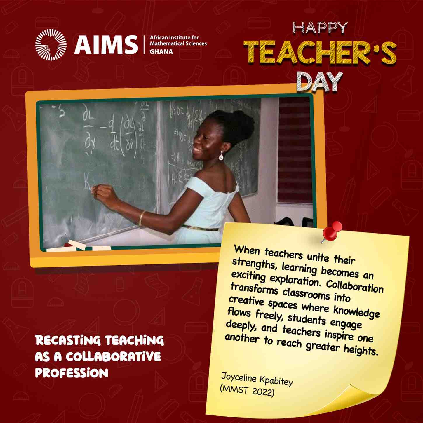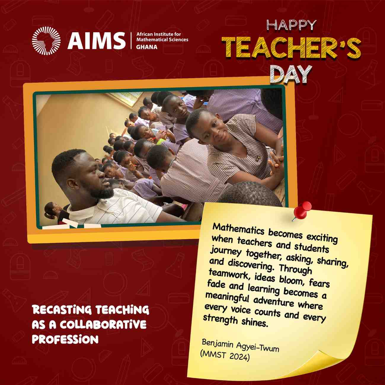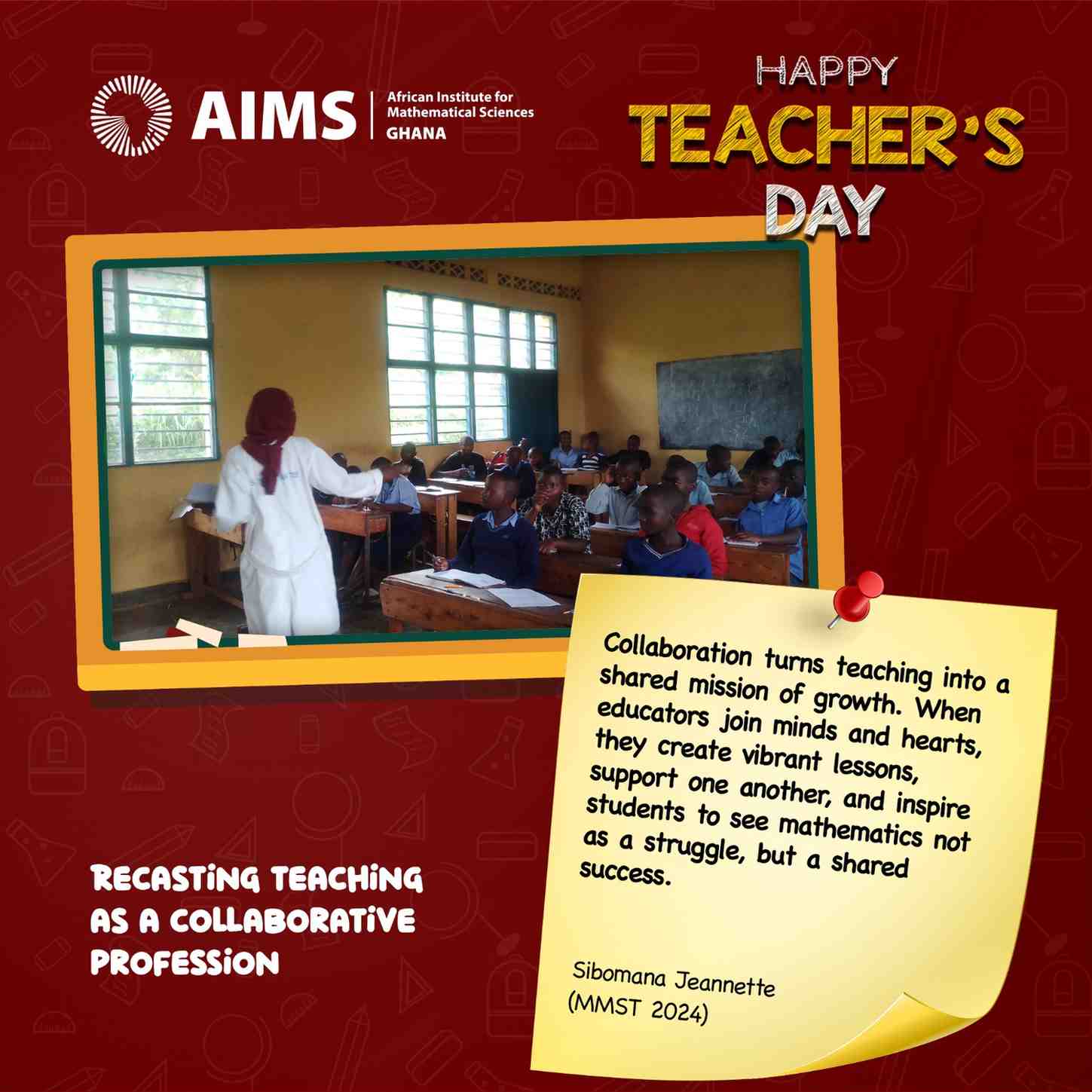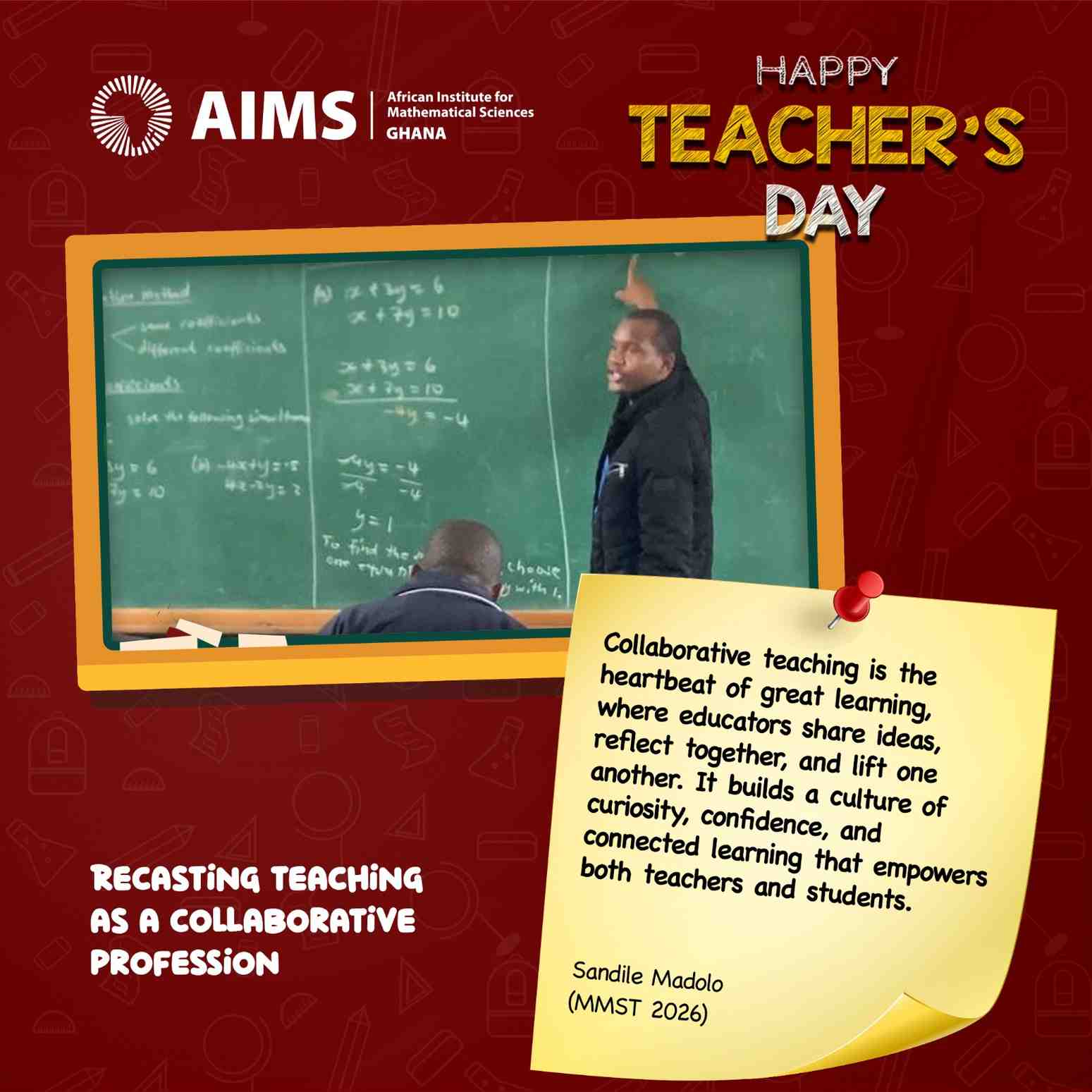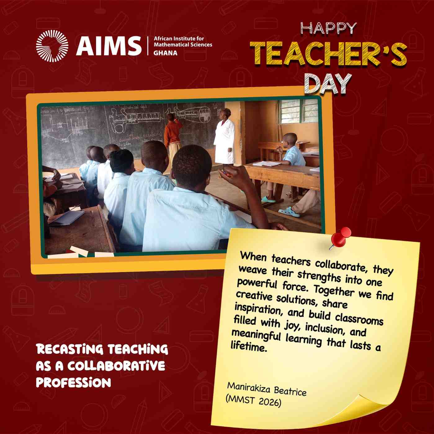 As the world celebrates World Teachers’ Day 2025 under the theme “Recasting Teaching as a Collaborative Profession,” the African Institute for Mathematical Sciences (AIMS) Ghana, a UNESCO Category II Centre of Excellence, joins the global call to reimagine teaching as a collective and empowering vocation.